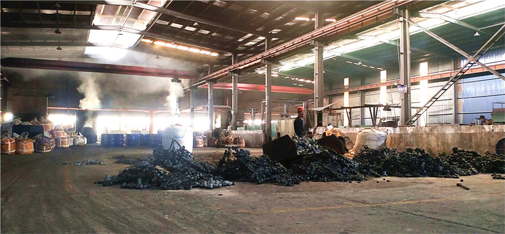 ★ 公司占地面積60畝,建有一萬(wàn)余平米的標(biāo)準(zhǔn)化鋼構(gòu)廠(chǎng)房。公司擁有先進(jìn)、完善的制造及檢測(cè)裝備,主要生產(chǎn)設(shè)備有鐵模覆砂鑄球自動(dòng)生產(chǎn)線(xiàn)、推桿式自動(dòng)油淬生產(chǎn)線(xiàn),以及中頻感應(yīng)電爐、熱處理電阻爐等,具有年產(chǎn)各類(lèi)鉻系鑄球2萬(wàn)余噸的能力